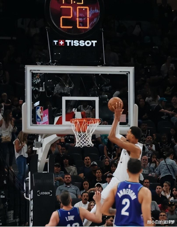 已经长到2.26米的文班亚马扣篮实在是太轻松,他的运动能力是姚明的数倍,面对努尔基奇篮下的卡位只要摆脱后就是暴扣。